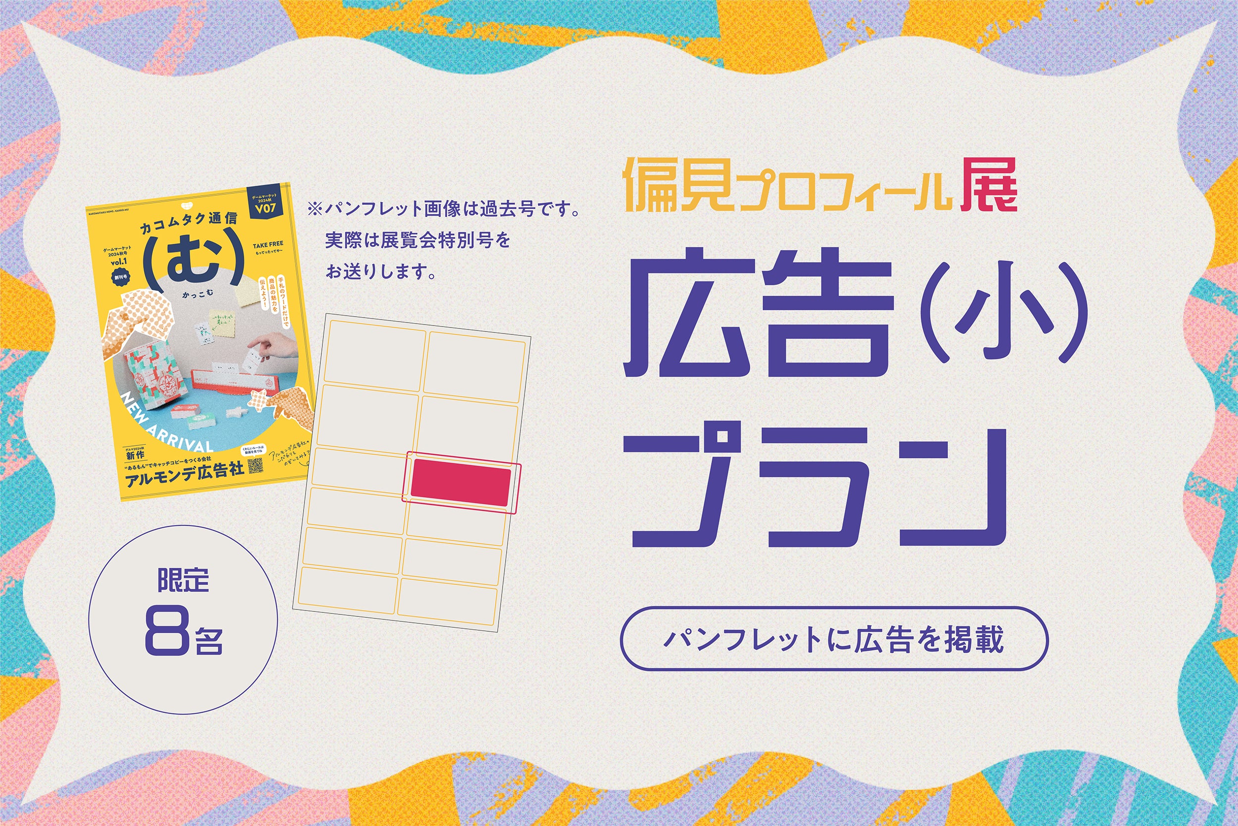パンフレットA5ページ1/8サイズを広告枠として自由に使っていただけます。