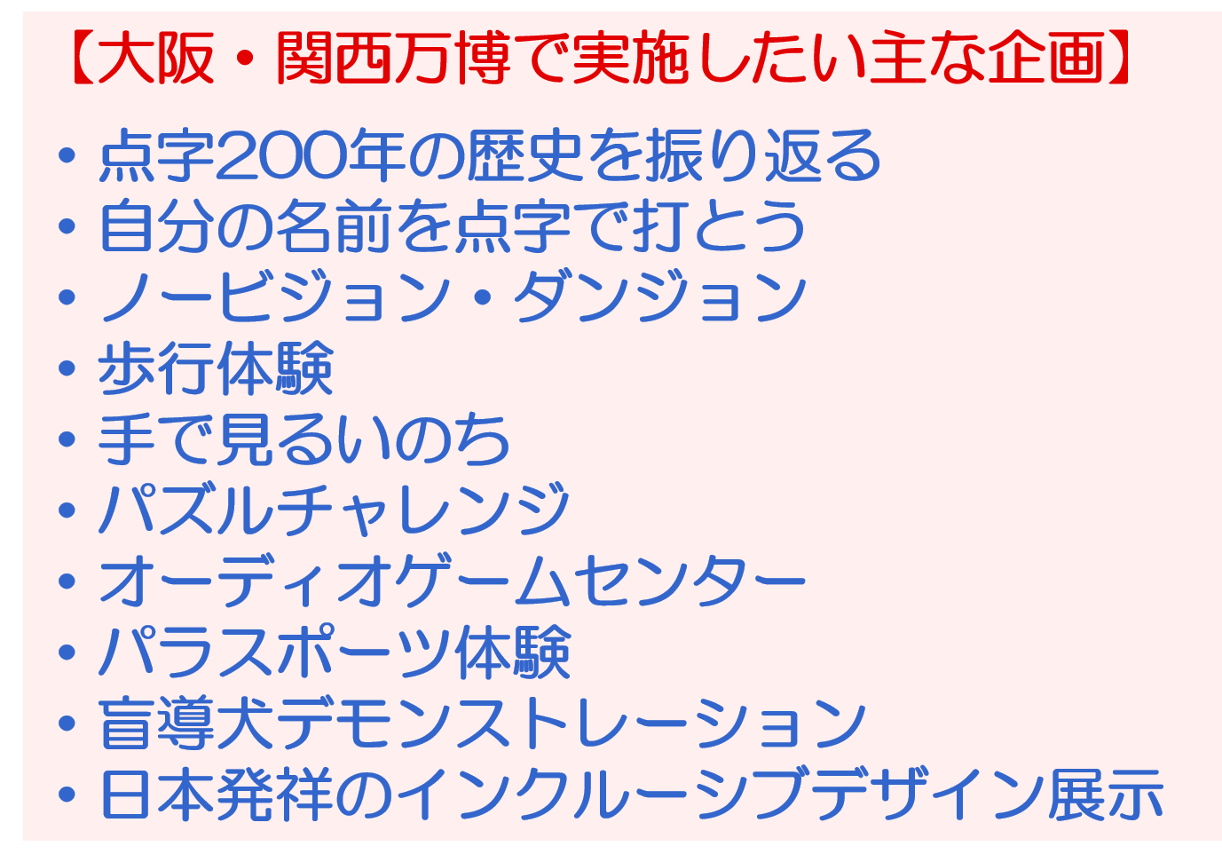 ・2025年4月19日~24日 大阪・関西万博にメディア催事「点字考案200年 視覚障害者の世界を体験する」を出展