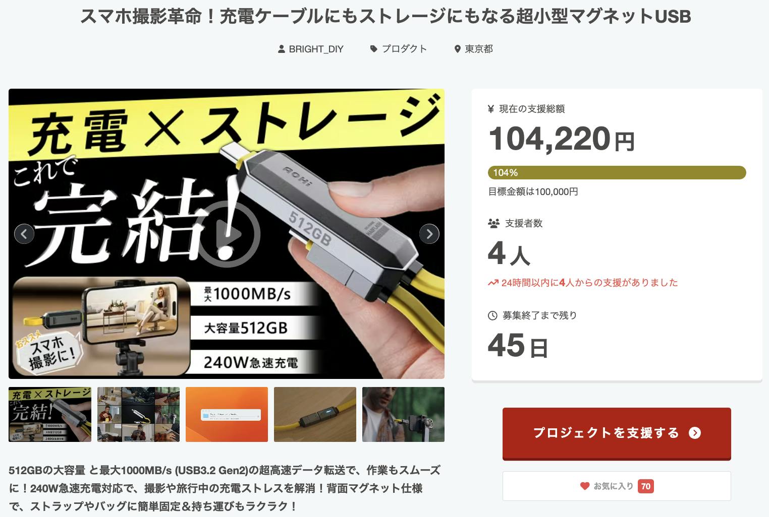 この度は「スマホ撮影革命!充電ケーブルにもストレージにもなる超小型マグネットUSB」に支援頂き誠にありがとうございます!