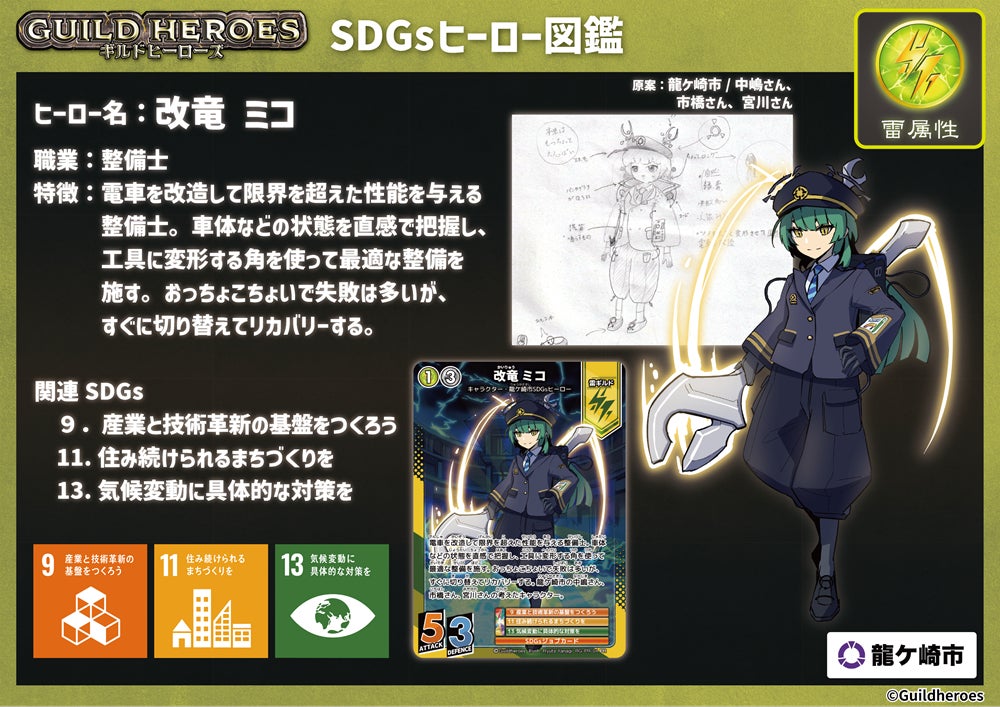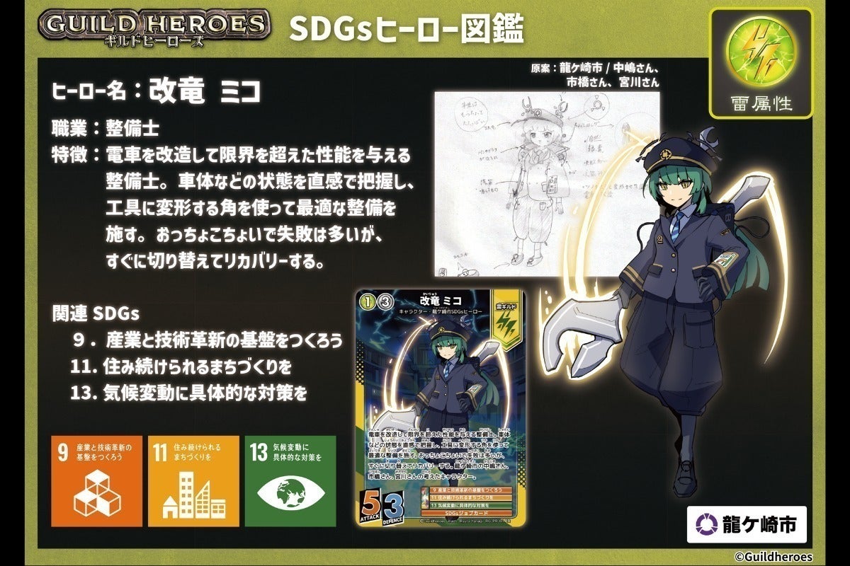 2025/02/06 22:02プロジェクトも折り返し地点に到着しました!残り22日!これまでご支援いただきました皆さま、ありがとうございます。ただ、目標額に対してはまだ4分の1ほどです。ご支援いただきました皆さまにも、ぜひ、周りの方やご友人などにもお声かけいただいたり、SNSなどを通じて周知拡散にご協力いただけますと幸いです。ちなみに、この高校生たちが龍ケ崎市にある職業(ギルド)を調査して、キャラクター化する取組は、今年度が2年目。今年度は、モチーフは「関東鉄道」「竜ヶ崎線」についてになっていますが、取組の最初の年となった昨年度は、モチーフは「龍ケ崎コロッケ」さんと「株式会社諸岡」さんでした。ちょっとだけ、昨年度のキャラもご紹介します!(一部今回のリターンにもトレーディングカードが付いてくるものもあります!チェックしてみてください。)龍ケ崎コロッケを扱う店舗の皆さまで構成している「コロッケクラブ龍ケ崎」さんをモチーフにしたのが、女の子の方の「リコ」リコは、一昨年のイベント「コロッケ横丁」でリアルリコちゃんも登場し、同団体のイメージキャラクターになっています。また、株式会社諸岡さんをモチーフにしたのが、男の子の方の「レイン」レインは、重機製造・販売の諸岡さんが取り組む、緑化保全活動の内容をレインの持つ特技に生かし、水を生み出せる能力やどこでも走れる重機の特性をキャタピラー型の靴を履くといった、企業の持つ特徴を反映したキャラになっています。今回のキャラクター「リュウニコーン・サキ」と「改竜ミコ」と合わせてごひいきにしてくださいませ。 もっと見る