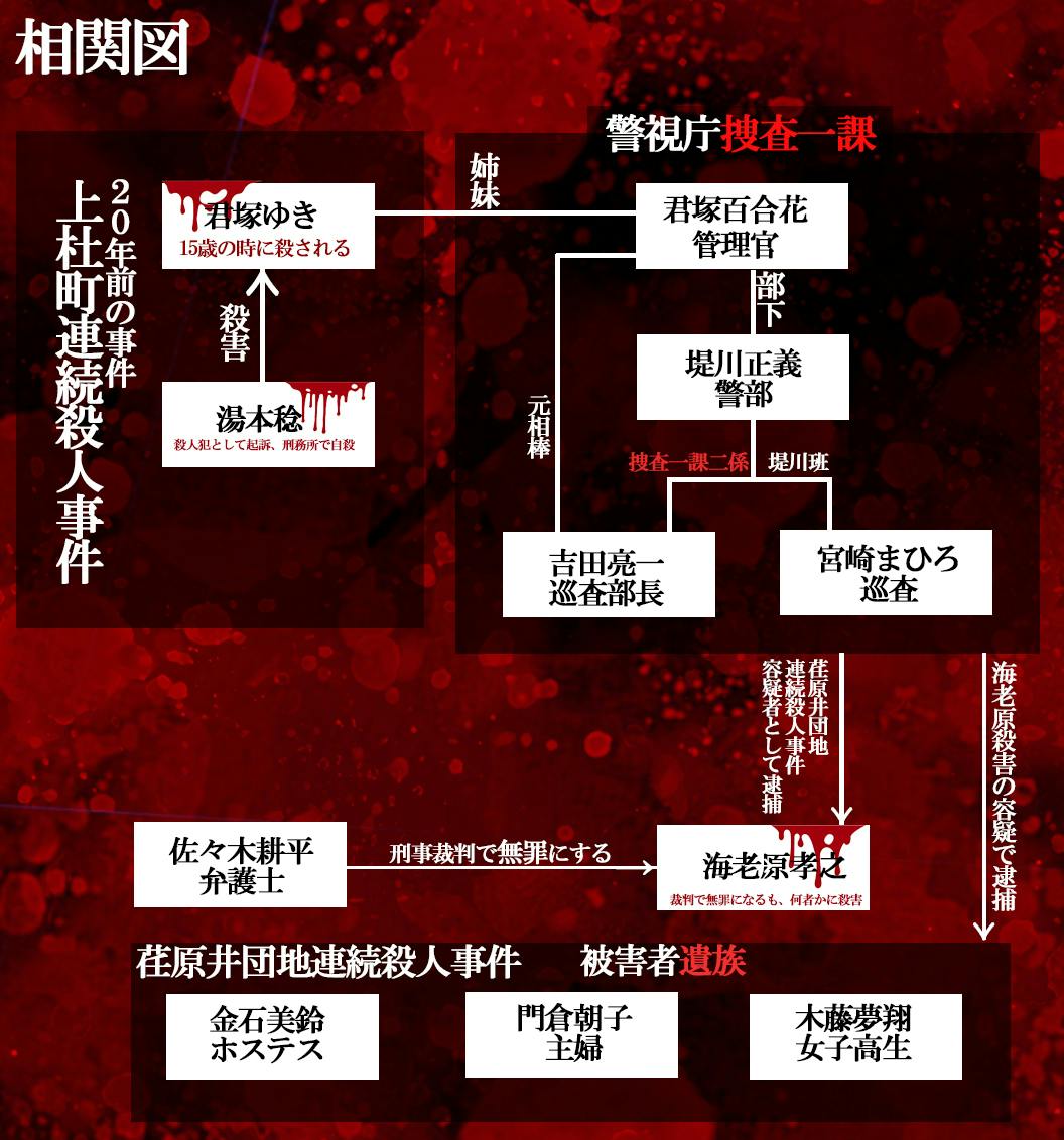 2025/01/20 10:18【物語の流れ】1. 主人公:君塚百合花の背景・主人公の君塚百合花は捜査一課管理官。・20年前に妹・ゆきを連続殺人事件で失う。・妹の事件は「犯人・金本稔が自供し留置所で自殺した」と、表向き解決済みとなった。2. 物語の発端・5年前で荏原井団地で発生した連続殺人事件の容疑者海老原が裁判で無罪判決となる。・海老原の無罪を勝った弁護士佐々木耕平が登場。佐々木弁護士は金本稔の息子。・佐々木は百合花に「20年前の事件は冤罪であり、真犯人は捕まっていない」と告げる。 さらに、荏原井団地の事件と20年前の事件の間に共通点が3. 再捜査と新たな覚悟・百合花は20年前の事件を独自に調べたが、当時の捜査には警察内部での隠蔽や不正があったことに気付く。・佐々木弁護士も独自に20年前の事件の真相にたどり着きそうになる。そして、何者かに殺される。4. 真犯人の正体・佐々木弁護士の殺害容疑で君塚が逮捕される。・佐々木の遺した録音データから20年前の連続殺人事件の真犯人が吉田巡査長であることが判明。5. クライマックス・百合花は吉田と対峙する。6. 結末・吉田を葬った百合花だが、自らの心も同時に崩壊していく。・百合花の最後の微笑みは、真実を知った安堵か、絶望的な絶望の始まりか――物語は残り韻を残して幕を閉じる。 もっと見る
