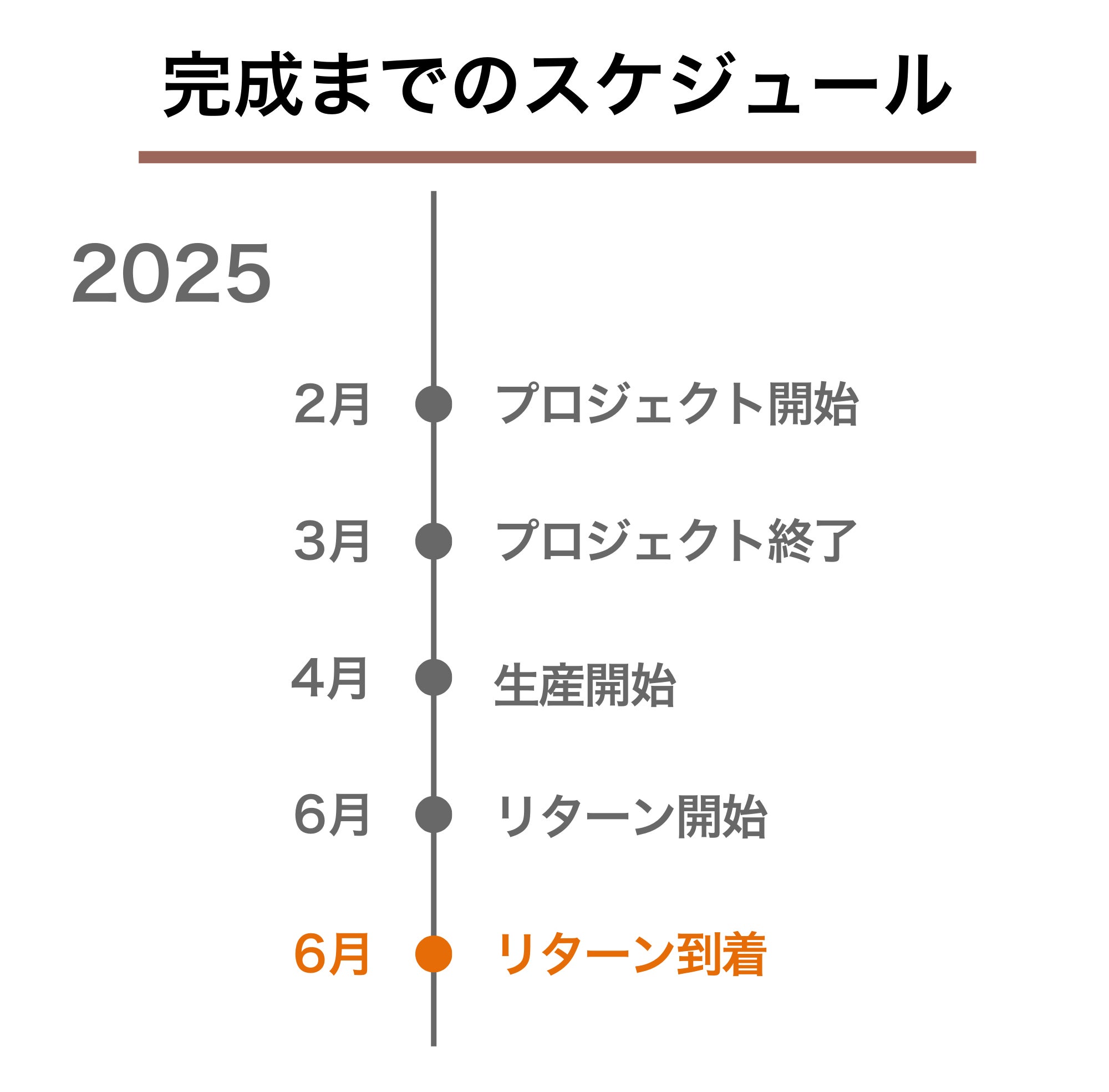 ※本文中に記載させていただいたスケジュールは、あくまでプロジェクト公開時点の予定です。クラウドファンディングを経て輸入を行う性質上、配送遅延のおそれがございます。