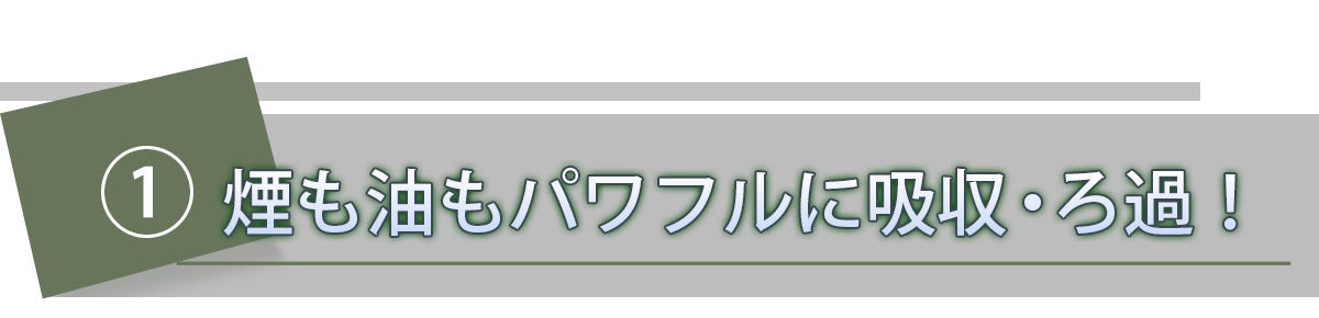 コンパクトながらも広い吸い込み面積でこもりがちな匂いや煙をガンガン吸収します。
