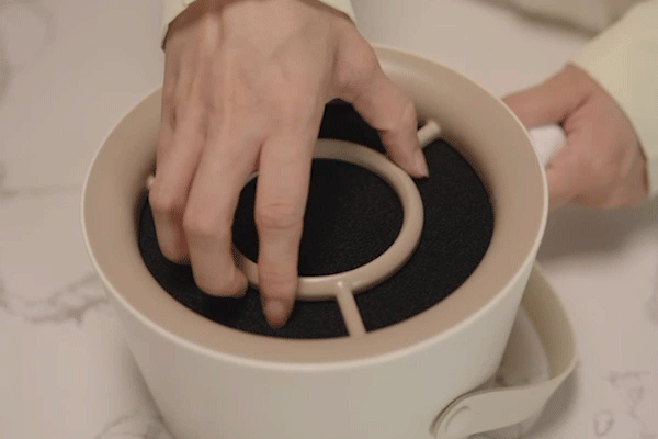 Desktop range hoodには活性炭フィルターを内蔵。空気中に飛び散る油も一緒に吸い込んだのちにろ過するので匂いはもちろん、調理後のべたつく油汚れも防ぎます!