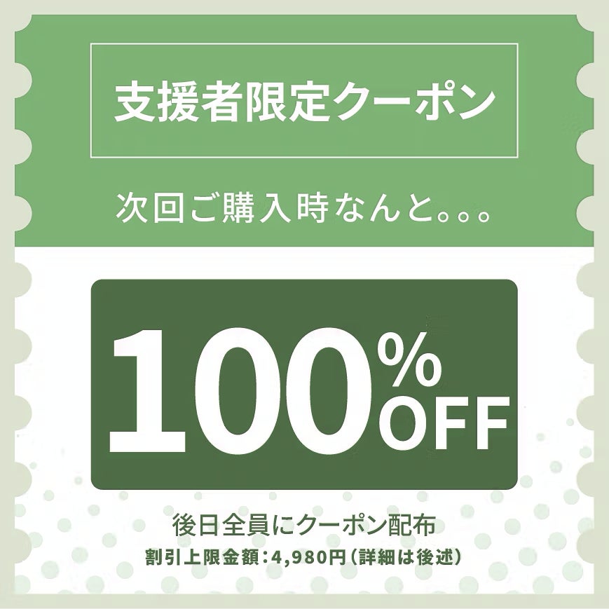 ※支援者様へのクーポン送付時に明記させていただきますので、ご安心ください。