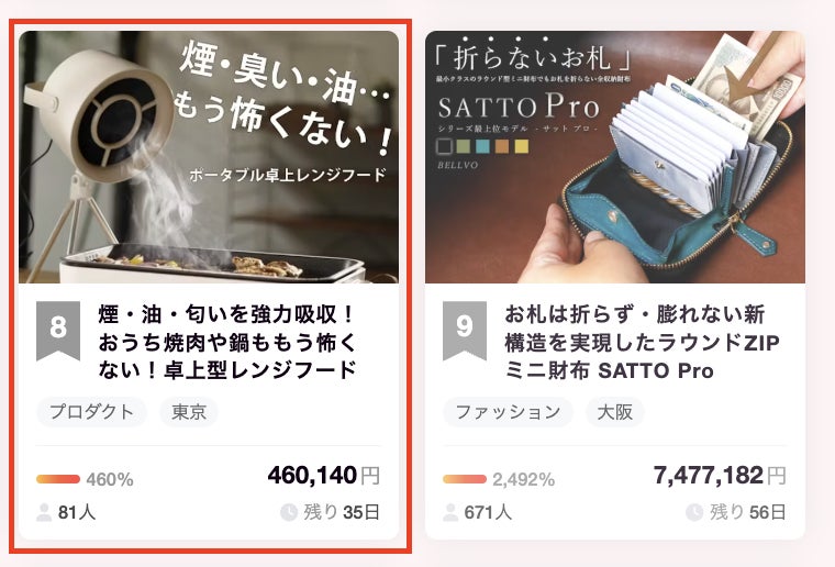また本日のCampfireランキングプロダクト部門で 3 位!総合で8位に入賞することが出来ました!