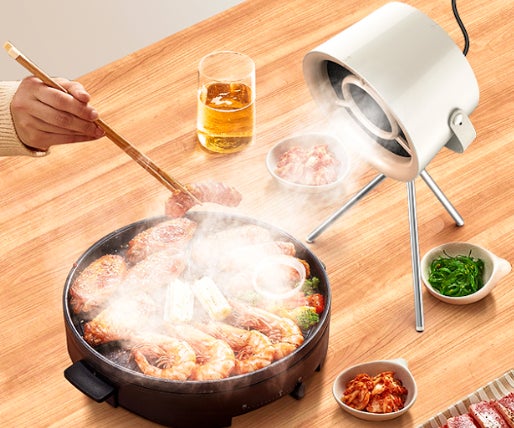そして、もう一つの大きな魅力は、Desktop range hoodの軽量設計です。本体の重量はわずか500g。これなら、持ち運びも全く負担になりません。自宅のキッチンはもちろん、アウトドアでのBBQやキャンプ、旅行先でも気軽に持っていけます。軽量なので、収納や設置も簡単。テーブルに置くだけでなく、吊り下げて使用することもでき、どんな場所でもしっかり換気ができます。
