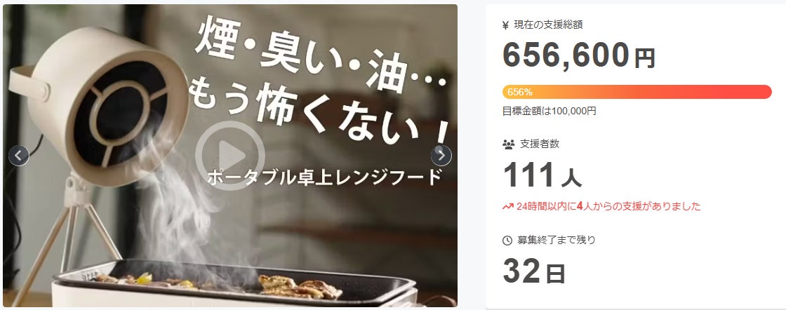 この度は「煙・油・匂いを強力吸収!おうち焼肉や鍋ももう怖くない!卓上型レンジフード」に支援頂き誠にありがとうございます!お陰様で、開始から10万円の目標金額を800%達成することができました。<臭いや煙を強力吸収する3つのモードを搭載。活性炭フィルターで油をろ過してきれいな空気に!180度で角度調整が可能だからピンポイントで効率よく換気できます。スタンドを取り外して吊り下げもOK!アウトドア用としても便利です。>ご興味のある方、ぜひ支援お願い致します。https://camp-fire.jp/projects/814581/viewBrightチームは、当プロジェクトをもっと多くの方に知っていただきたいと考えております。よかったら、FacebookやTwitter等のSNSでのシェア・拡散をお願い致します。#brightdiyどうぞよろしくお願い致します。Brightチーム