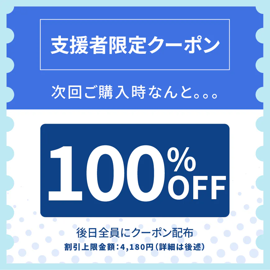 ※支援者様へのクーポン送付時に明記させていただきますので、ご安心ください。