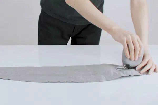 STEP 2.バルブの反対側から丸めるように折り畳みます。