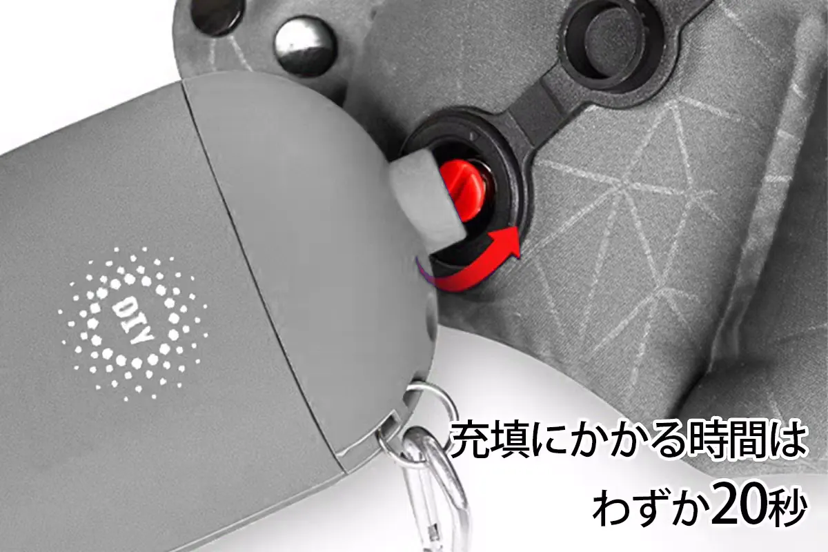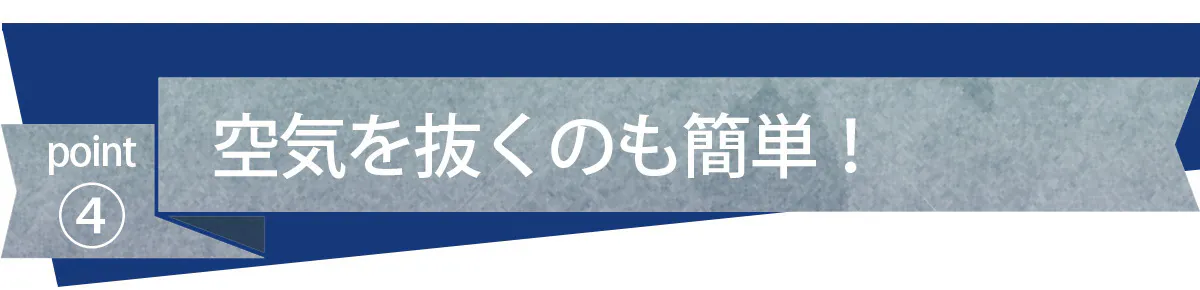 バルブの排気栓を押し開けることでわずか3秒で空気を抜くことができます