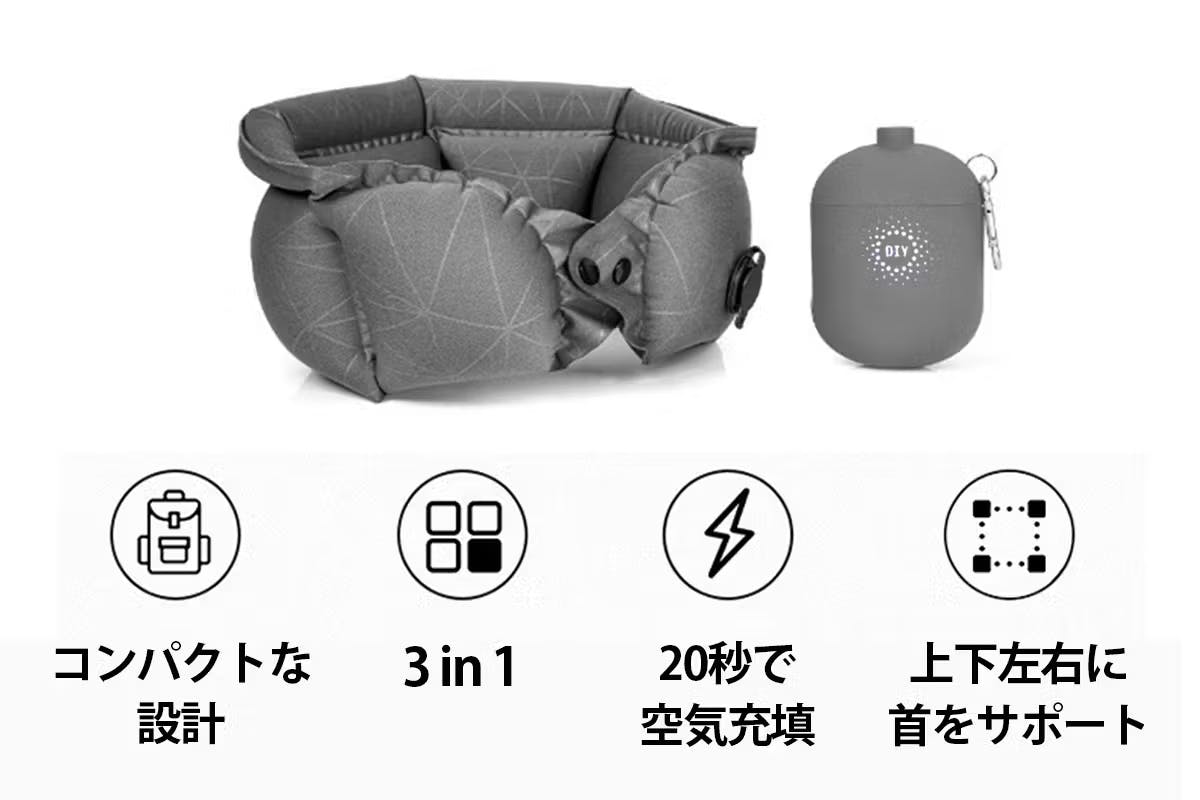 旅行やオフィスでの休憩に欠かせないネックピロー。しかし、従来のエアピローは「空気を入れるのが面倒」「長く使うとバルブが壊れて膨らまなくなる」といった問題がありました。特に、専用のポンプを別途用意するタイプは、ポンプが破損すると使用できなくなるという欠点があり、多くの人がストレスを感じていました。そこで登場したのが、画期的なエアポンプ機能を搭載した3in1ネックピローです。わずか20秒で膨らみ、壊れにくい設計のため、長期間安心して使える優れた製品です。