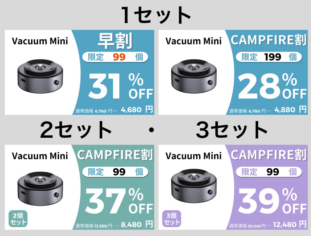 CAMPFIREでの発売を記念して、お送りする際の配送料は全て当社が負担します!お得なこの機会にぜひVacuum Miniを使用してQOLを上げてみませんか?
