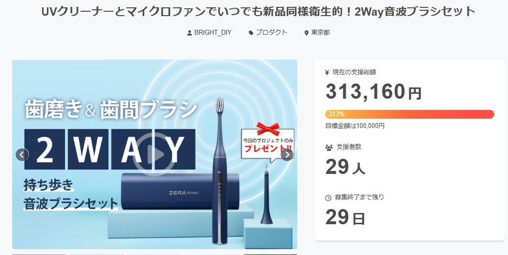 皆様、こんばんは!Bright DIYチームです。2024年7月21日、Lifehackerで「ZERA SONIC」を紹介して頂きました。話題:オフィスや旅行用にいいね! 除菌&乾燥機能付き音波振動歯ブラシが快適で便利でし興味がある方、是非下記のリンクからアクセスしてみてください。https://www.lifehacker.jp/article/machi-ya-zerasonic-review-755478/【レビューの一部抜粋】〈 フロスにもなる便利な2way仕様こちらがポータブル音波振動歯ブラシの「ZERA SONIC」。本体やケースはネイビー基調にゴールドの差し色で高級感もたっぷり。ブラシは分離式なので使用時にはカチっと装着。特に難しい点はありません。「ZERA SONIC」が便利だと思ったのがフロスも音波振動で使える点。筆者も歯科医では毎回歯間ケアの重要性を説かれているので、外出先でもサッと使えるのは助かりました。〉ご興味のある方、ぜひ支援お願い致します。https://camp-fire.jp/projects/view/8145843月31日まで販売期間は続きますので、ぜひSNSでのシェアや身近な方にもおすすめしていただけると嬉しく思います。#zerasonic #zera_japan #brightdiyどうぞよろしくお願い致します。BRIGHTチーム