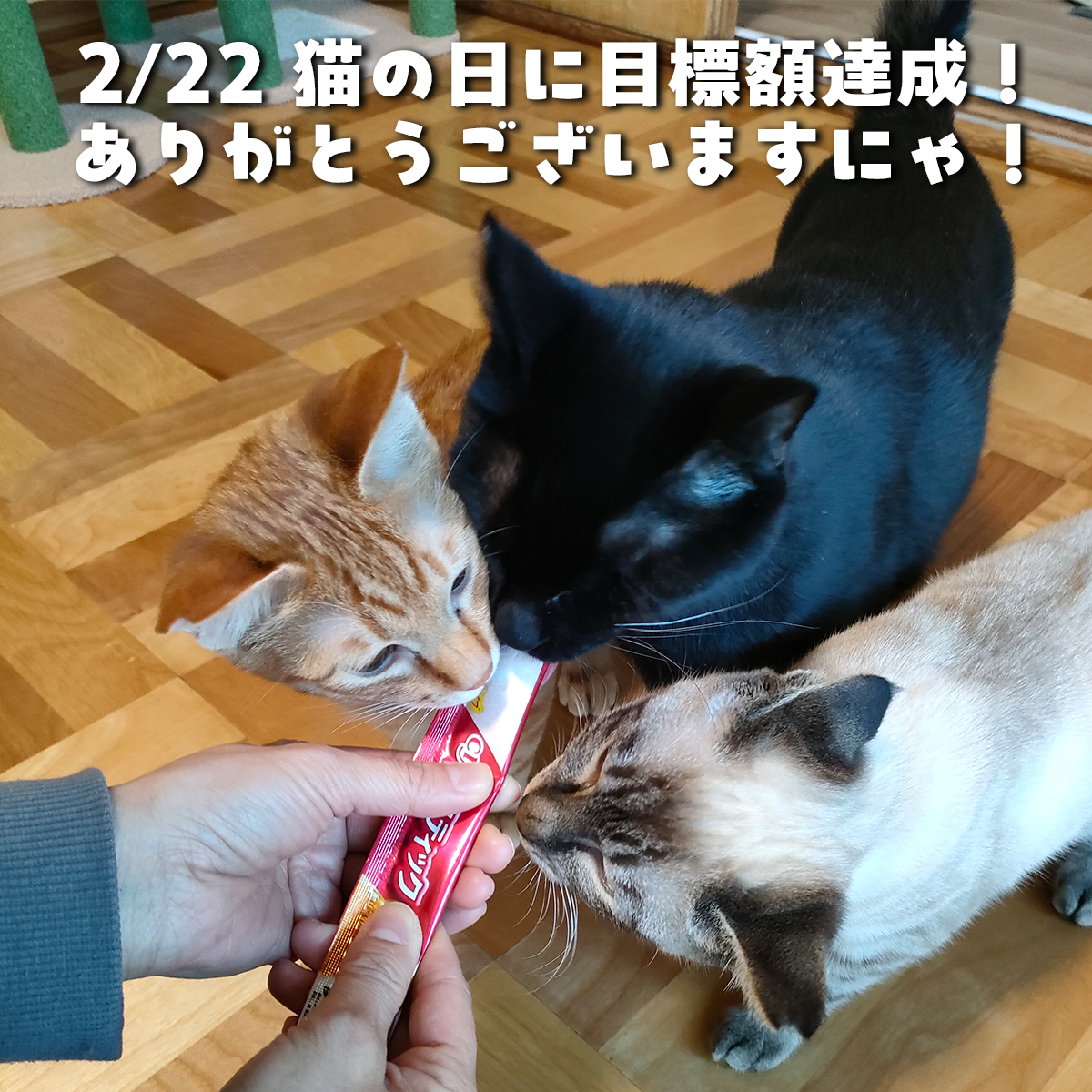 みなさまのご支援のおかげで、2月22日(猫の日)に目標額の50万円を達成しました!