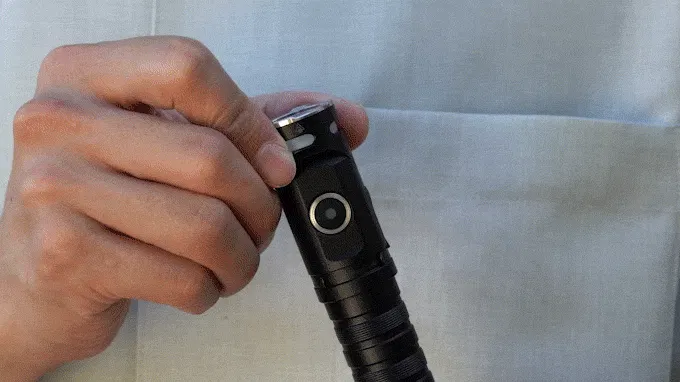 ヘッドを回転させて本体についているクリップを使えばポケットやキャップに固定することができます。