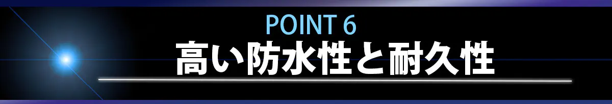 あらゆる方向からの水しぶきに対して耐えられるIPX4の防水性。