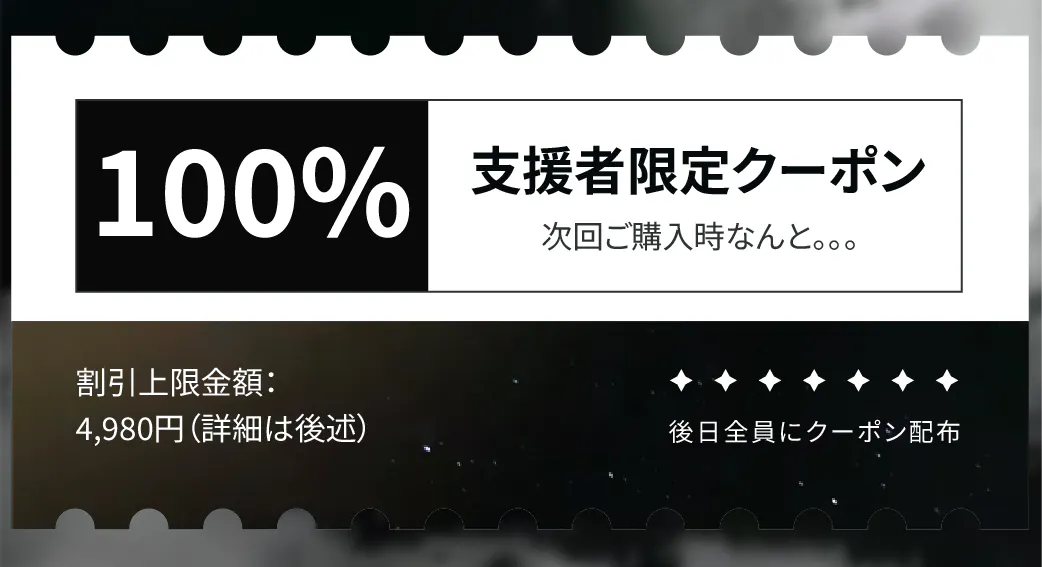 ※支援者様へのクーポン送付時に明記させていただきますので、ご安心ください。