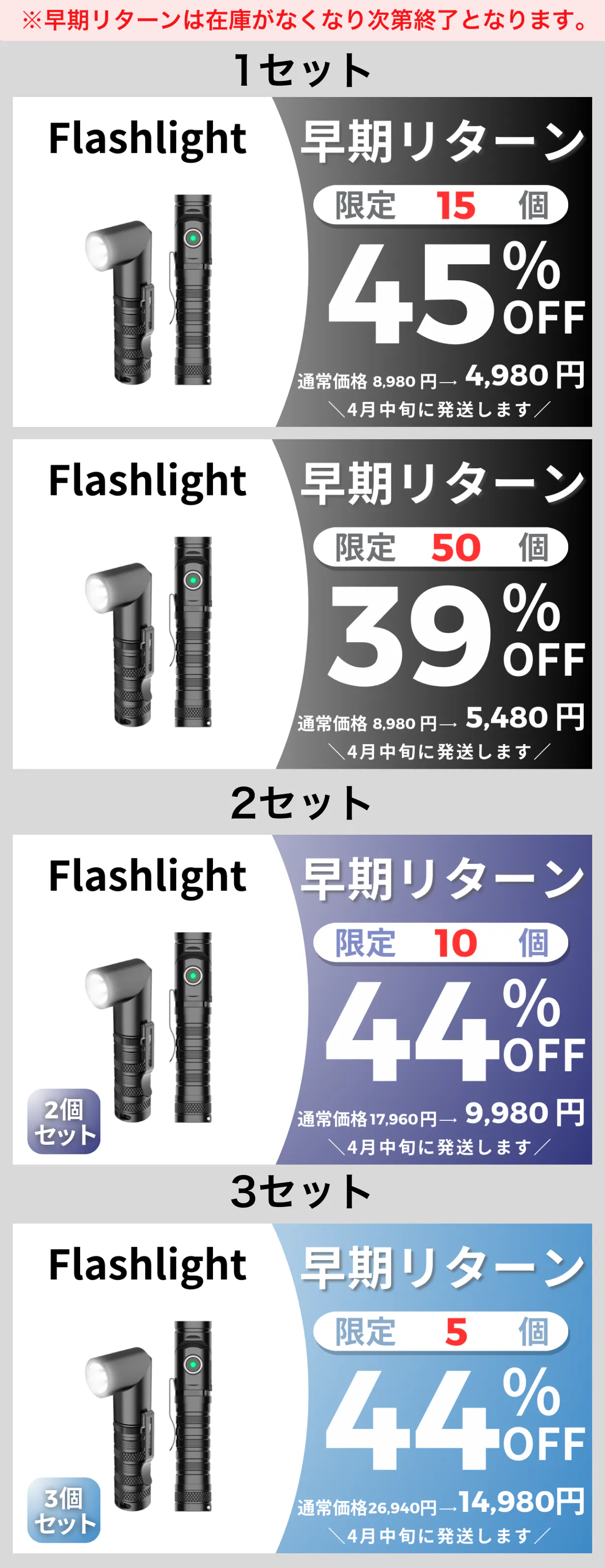 小型なボディとは裏腹に圧倒的な明るさや照射距離が魅力の本品が皆様のお役に立つことを願っております!