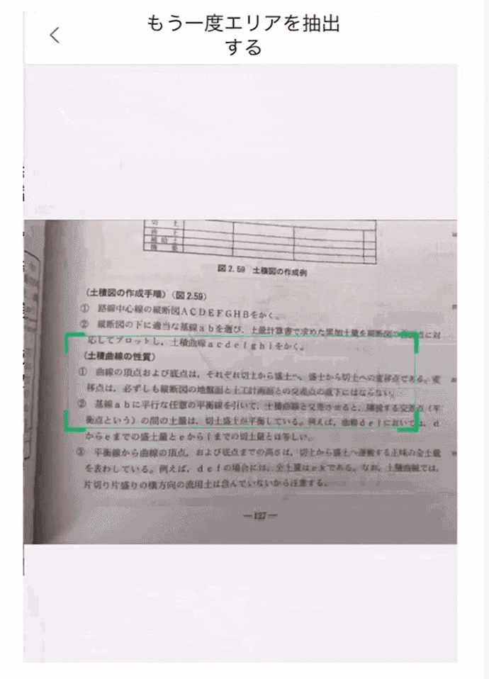 印字された文字を撮影した画像の中から読み取りたい範囲を選択し、電子テキスト化しています