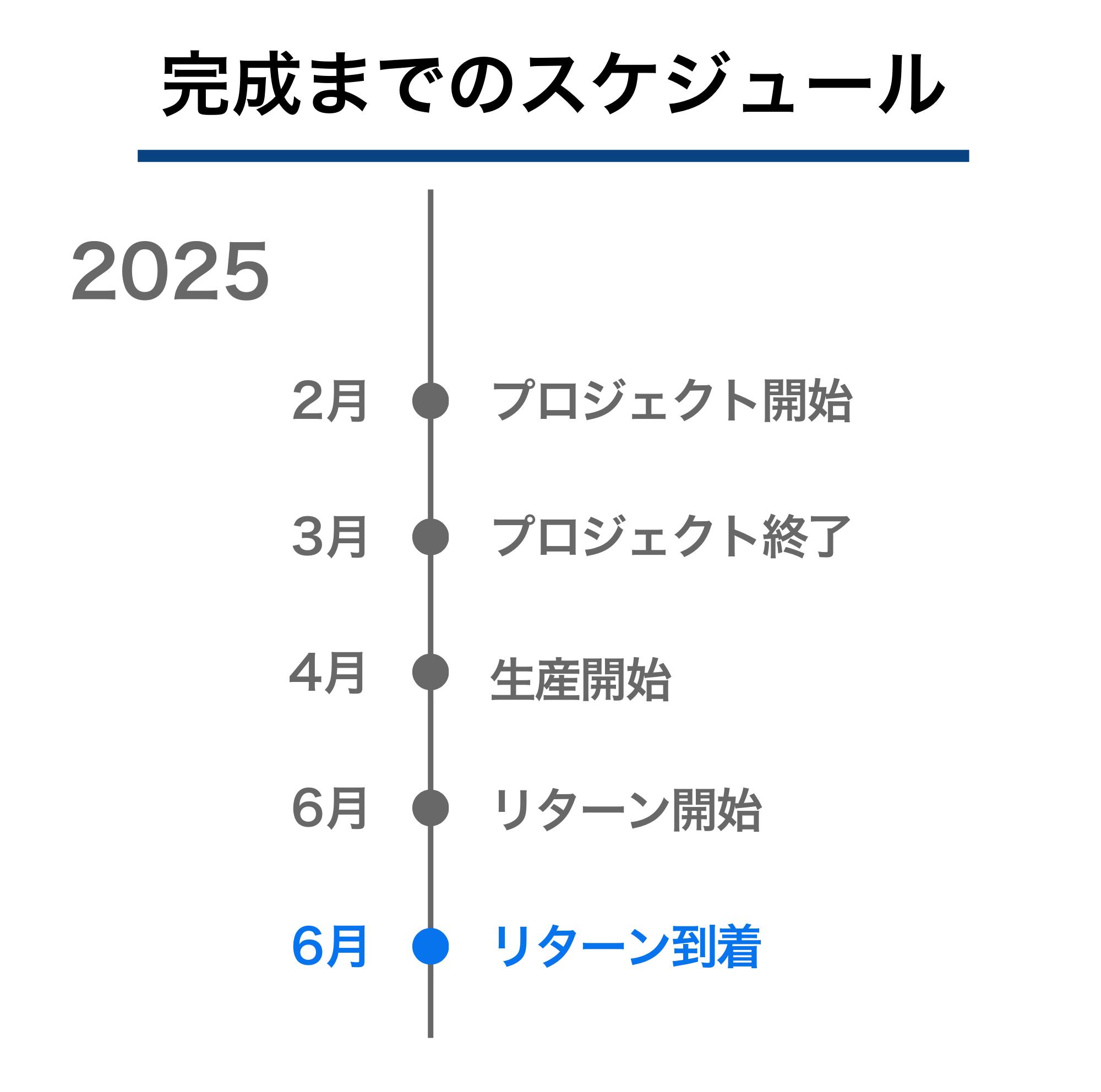 本文中に記載させていただいたスケジュールは、あくまでプロジェクト公開時点の予定です。 クラウドファンディングを経て輸入を行う性質上、配送遅延のおそれがございます。