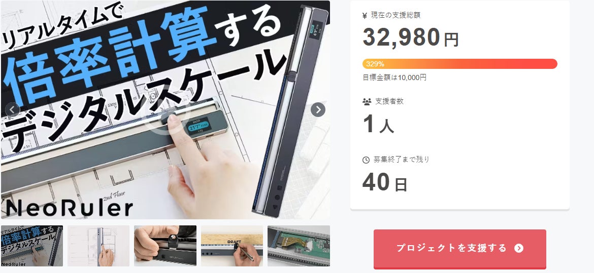 この度は「倍率自動計算で図面制作を簡単に!次世代の製図用デジタルスケールNeoRuler」に支援頂き誠にありがとうございます!