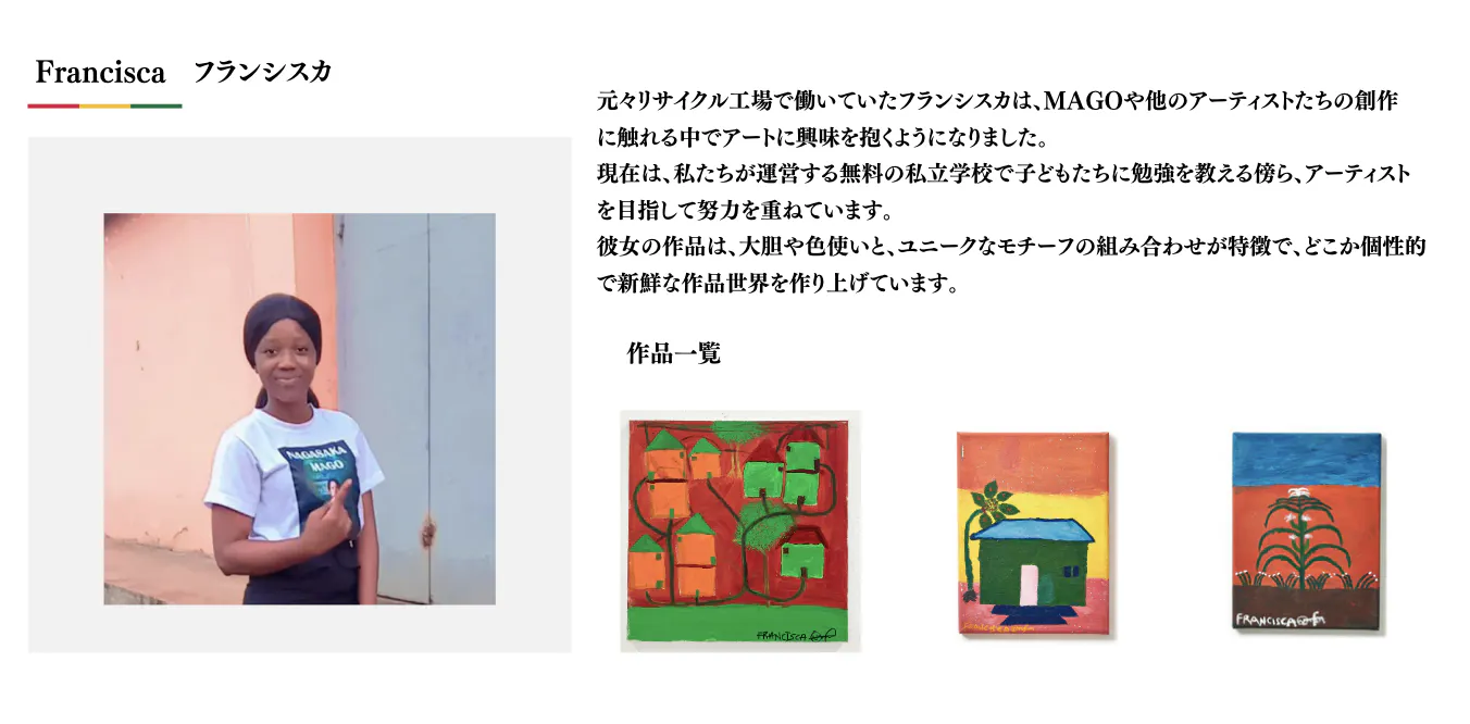 ・ガーナのスラム街出身のアーティスト集団「BONBO STARS」を東京に招待し、作品展示やワークショップ、交流会を通じて、彼ら一人ひとりの魅力をより深く知っていただける機会を作りたいと考えています。また、彼らの作品を多くの方に届けることで、その価値を広く世界に発信していきたいです!