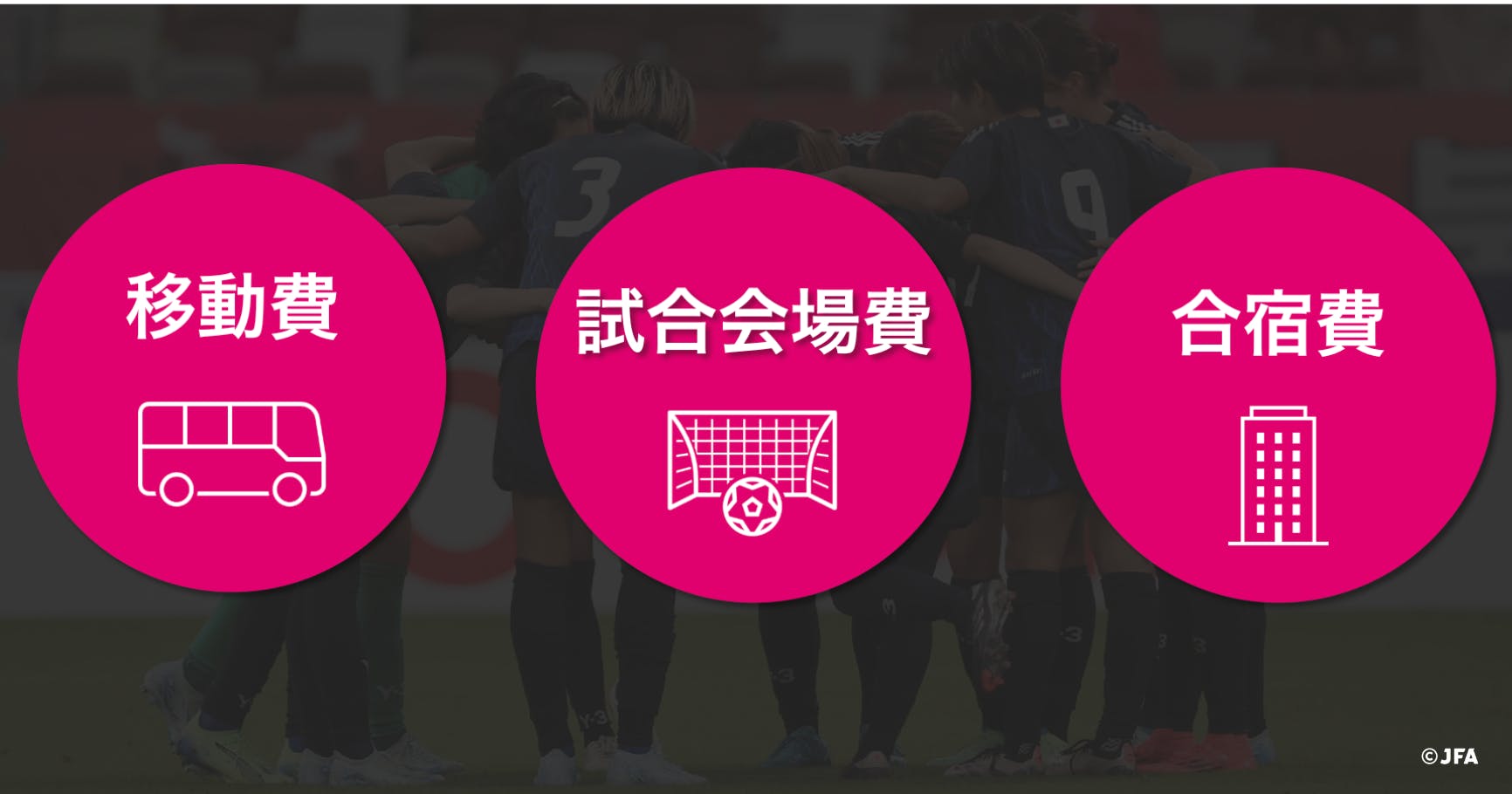 皆さまからご支援いただいた支援金は、U-16/U-17/U-19日本女子代表の『強化・育成費用』として使用させていただきます。