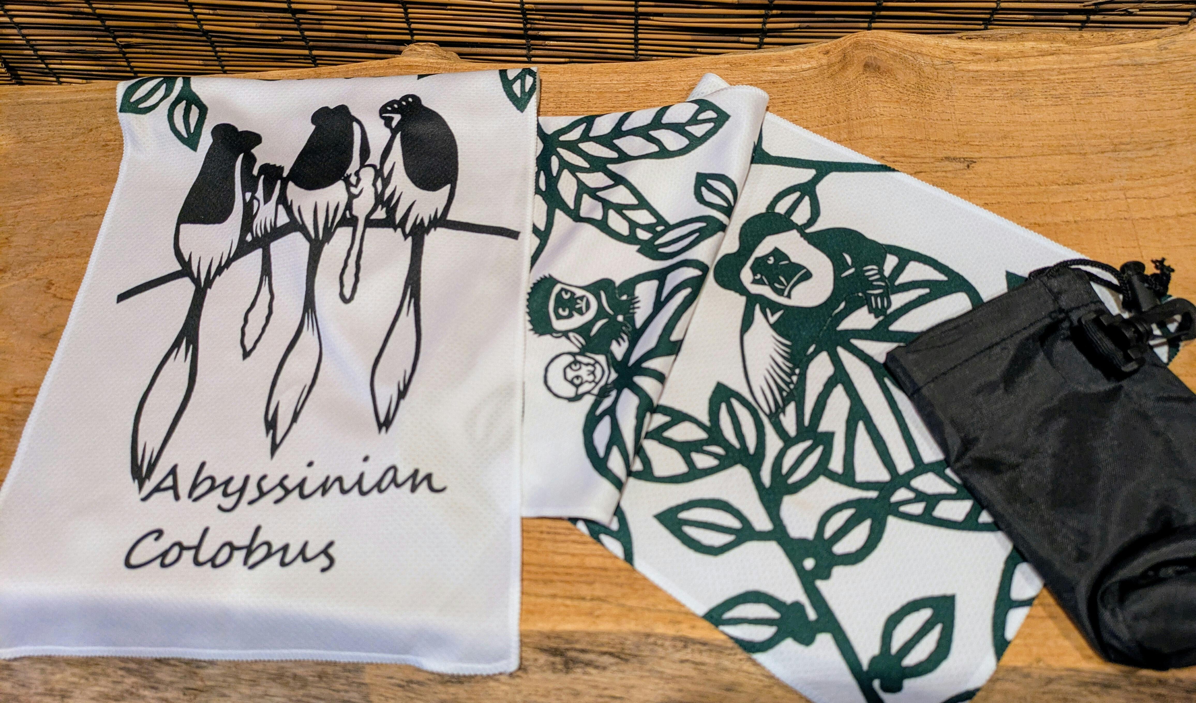 ❁アビシニアコロブスバージョンはティーバッグのお茶と、それにリンクしたデザインのクールマフラータオルのセットになります