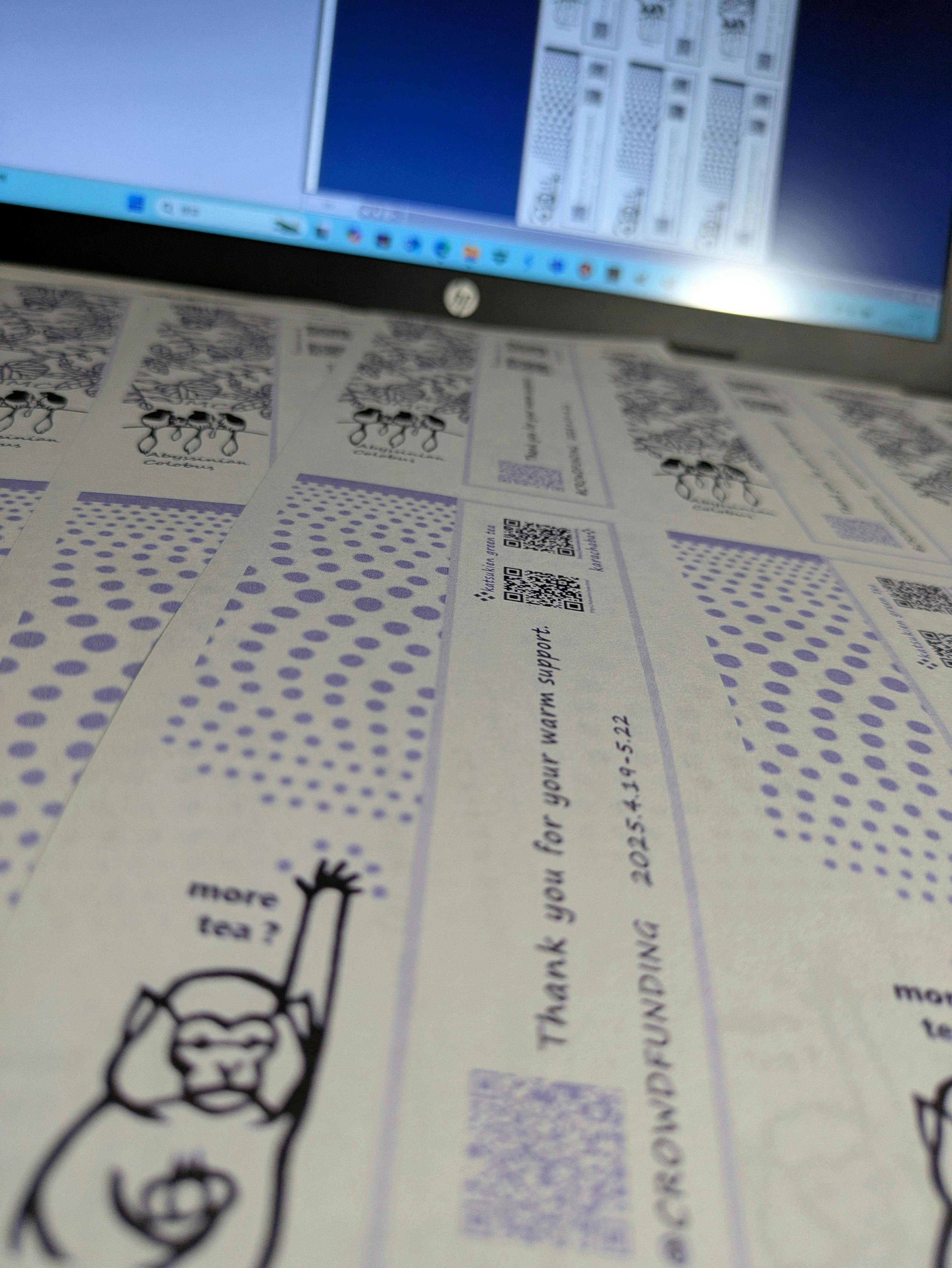 …あと、お礼のしおり(栞)だ!(まさか忘れてたんですか?) …とても手作り感あふれるしおりをせっせと作成中です(ちゅうもり〜とくもりご支援が対象です)