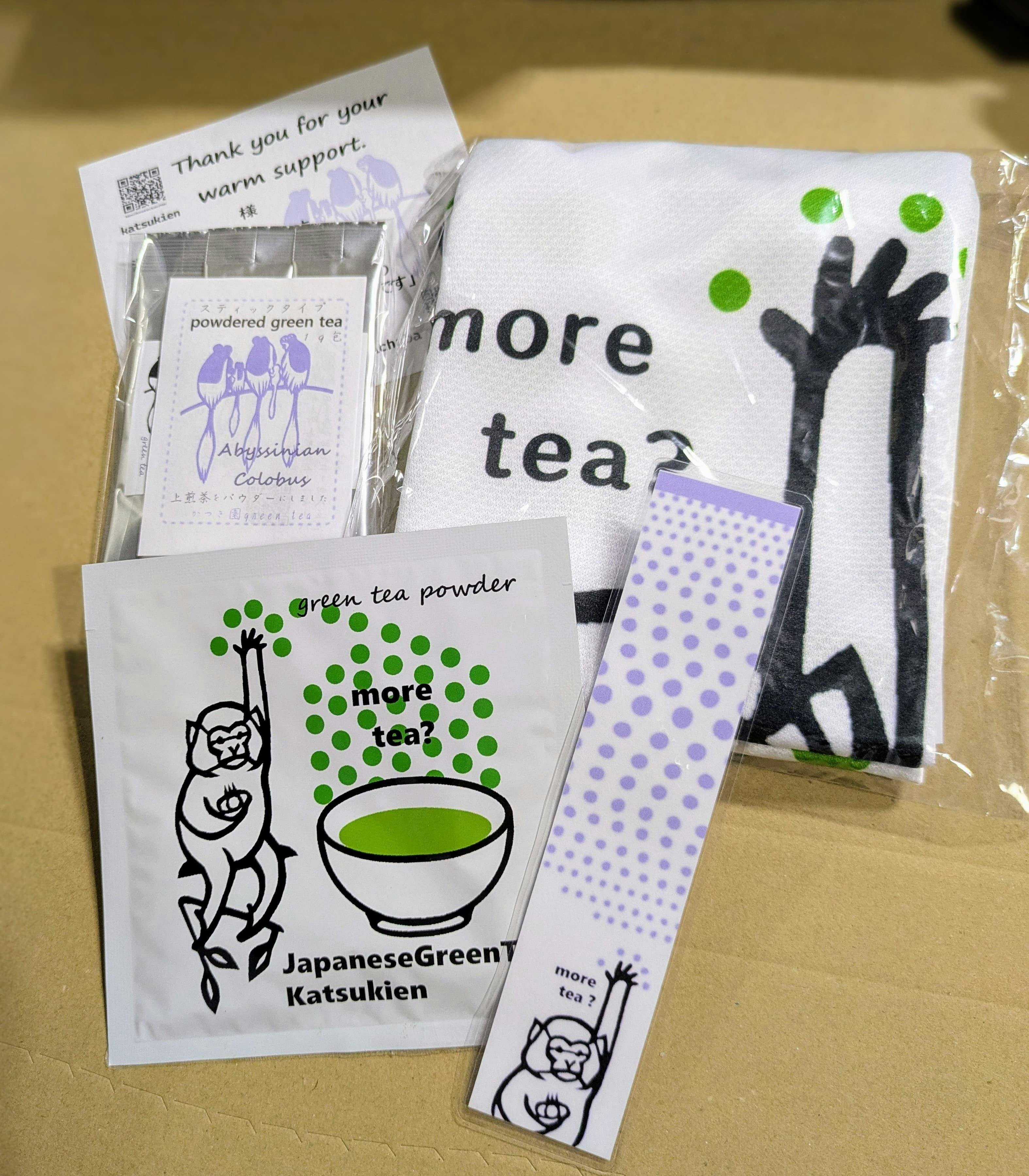・お礼のしおり(デザインはランダム) ・おまけの粉末緑茶 ・お礼のメッセージ