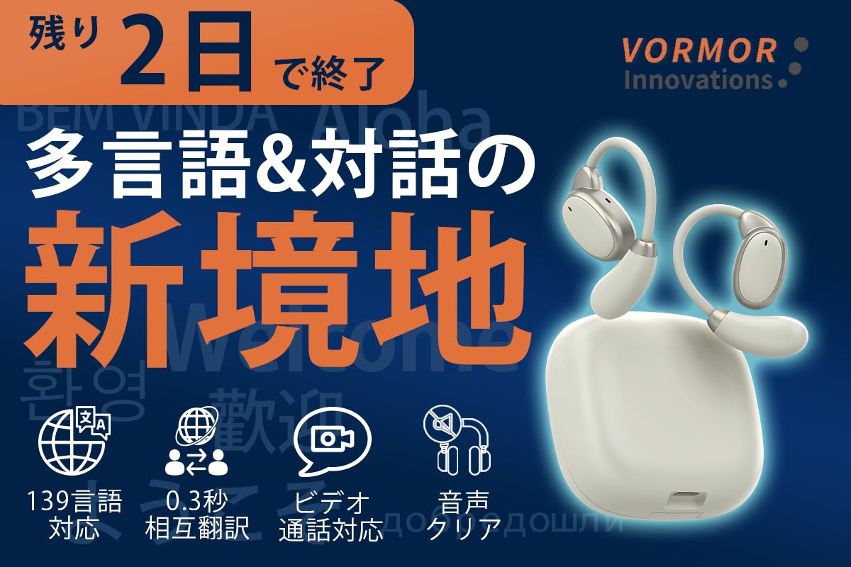 VORMOR V13は、最大139言語に対応し、最短0.3秒で翻訳するリアルタイム翻訳機能に加え、軽量で快適な装着感、そしてコストパフォーマンスの高さが魅力。