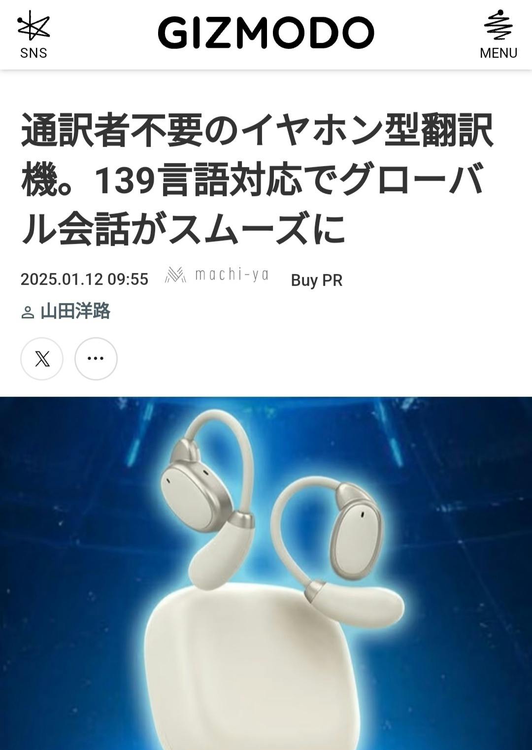 世界139言語を瞬時に翻訳できるイヤホン型翻訳機「VORMOR V13」が登場。その魅力を余すところなく紹介したレビュー記事が公開されました!「VORMOR V13」は、AI技術を駆使した革新的な翻訳デバイス。耳に装着するだけで、たった0.3秒という驚異的なスピードでリアルタイム翻訳を実現します。旅行やビジネス、国際会議、学習など、多様なシーンで自然なコミュニケーションをサポート。さらに、軽量設計(片耳6.8g)とノイズキャンセリング機能を搭載し、長時間の使用でも快適さをキープ。翻訳だけでなく、高音質な音楽再生も楽しめる多機能性がポイントです。多国籍なメンバーと共同作業をするビジネスパーソンや、海外旅行や留学を考えている方にとって、「VORMOR V13」は必須アイテムになること間違いなし。▼詳細は、Lifehacker Japanの特集記事をチェック!https://www.lifehacker.jp/article/machi-ya-vormorv13-review-814661/ーーーーーー139言語の会話もノイズもクリアに。耳で世界の壁を超える1台3役スマートイヤホン「VORMOR V13」▼【数量限定】【最大37%OFF】にてmachi-ya公開中!https://camp-fire.jp/projects/814661/viewーーーーーーなにかご不明な点やご質問などありましたら、LINEなどでいつでもお聞きください!▼LINE公式https://lin.ee/8ThoQBT引き続きご支援の検討のほど、何卒よろしくお願いいたします。VORMOR正規代理店ショプラボ