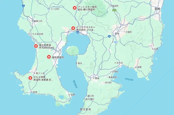鹿児島県は県内で既に8か所のウイスキー蒸留所があり、全国的にも非常に蒸留所の多い地域です。