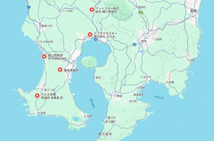 鹿児島県のウイスキー蒸留所(googlemapより)