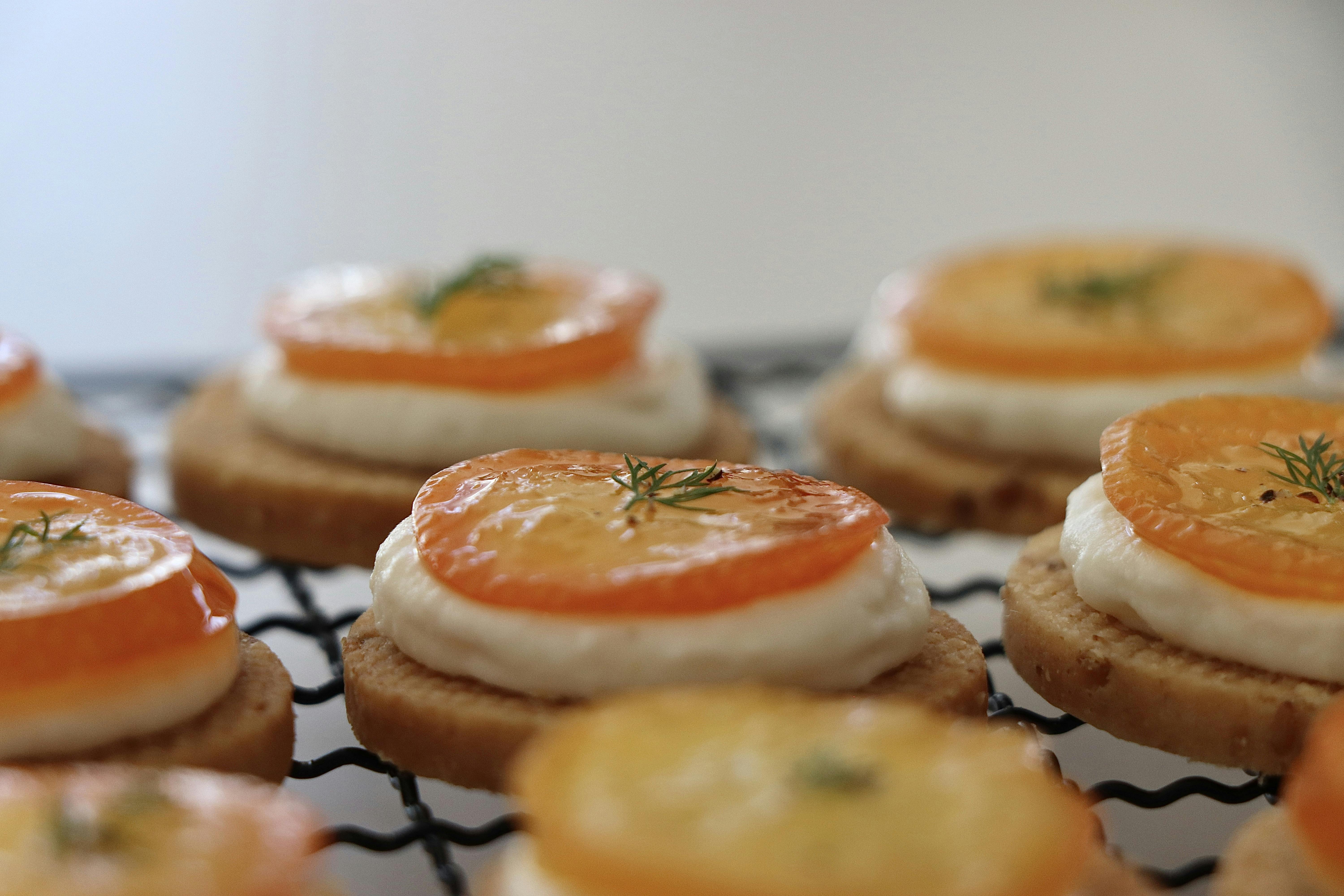 前菜:百合根と金柑、胡麻の塩サブレ660円