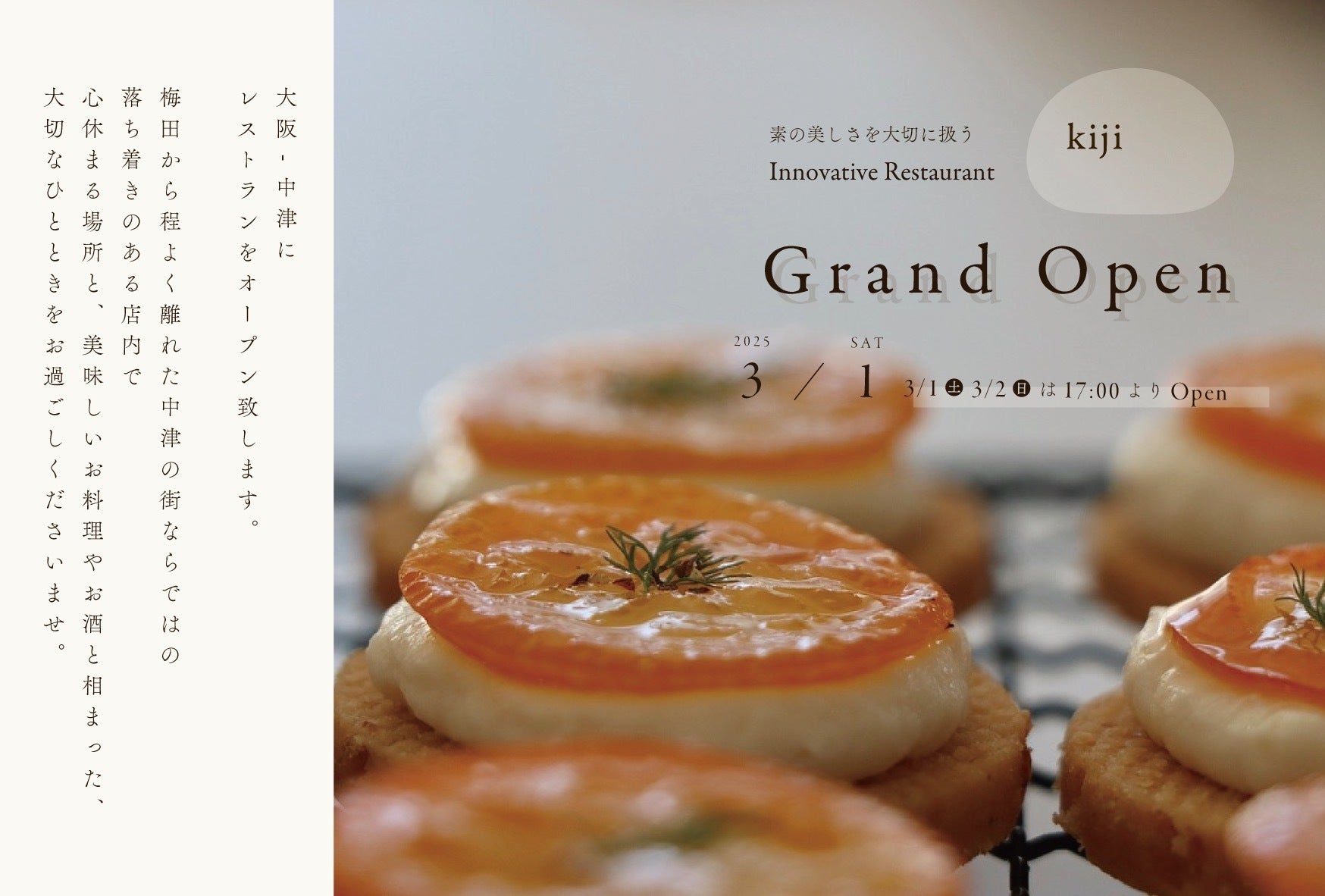 当レストラン 「kiji 」が、私にとっても皆様にとっても、より特別なお気に入りの空間となるように、オープンまで残された時間、開業準備に全力を尽くしますので、引き続きご支援のほどよろしくお願いいたします。