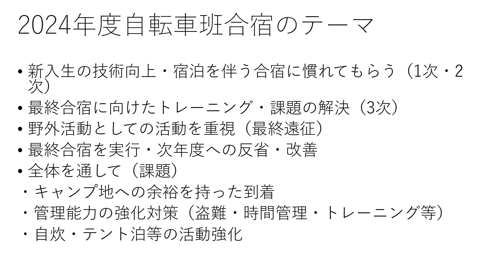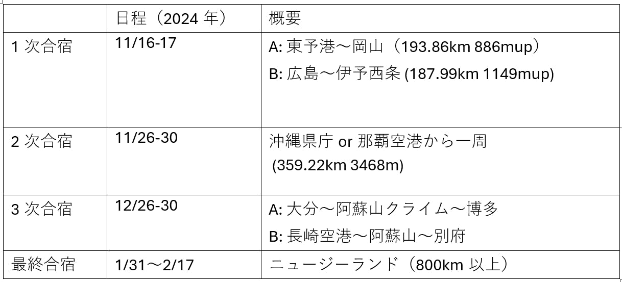 今回のNZ合宿は自転車班の今年一年の集大成とも言える合宿であり成功させたいものです。チーム一丸となってやり遂げたいことであり、ワンダーフォーゲル部に入っている今しかできない挑戦であると思うので頑張っていきたいとです。