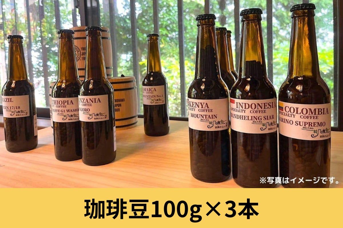 松風庵オリジナルブレンド珈琲豆(瓶詰め粉)100gを3種類お送りさせていただきます。