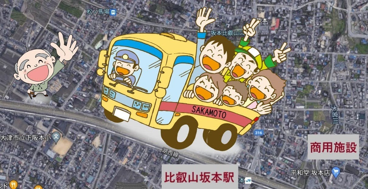坂本は自然と歴史に恵まれた美しい町ですが、公共交通機関が少なく、特に高齢者の方々の移動が課題となっています。