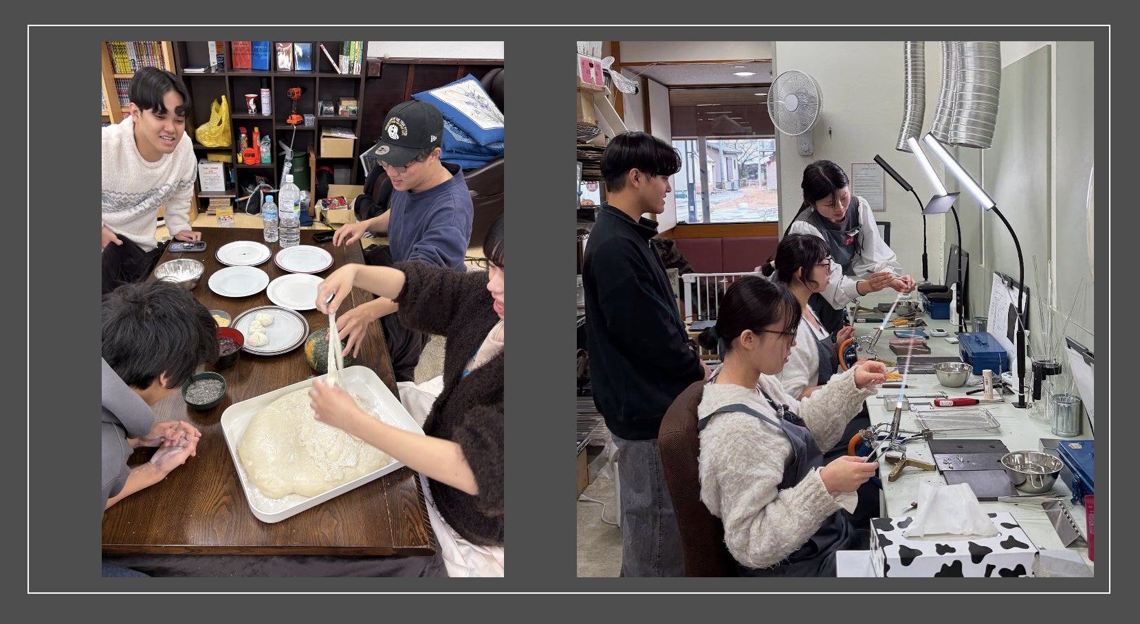 ガラスアクセサリー作り体験をしたり、お餅をついたり、、、