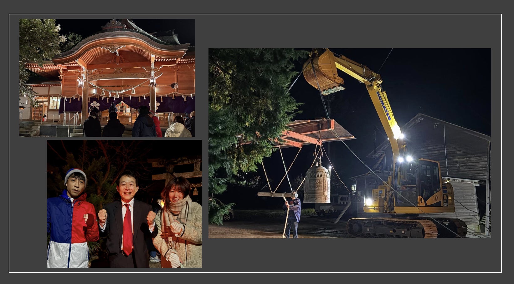 須須神社には、ゆく年くる年の中継がきていました。除夜の鐘がクレーン車で吊るされていたりとまだまだ大変な状況ですが、おそらく私自身が生まれた時もお宮参りで訪れたであろう場所。こうして今ここにいるのが不思議な感覚ですが、導かれているのだと思います。