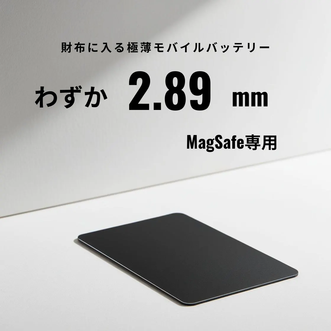 「厚さ2.89mm!」という、超薄型設計のモバイルバッテリーを実現。