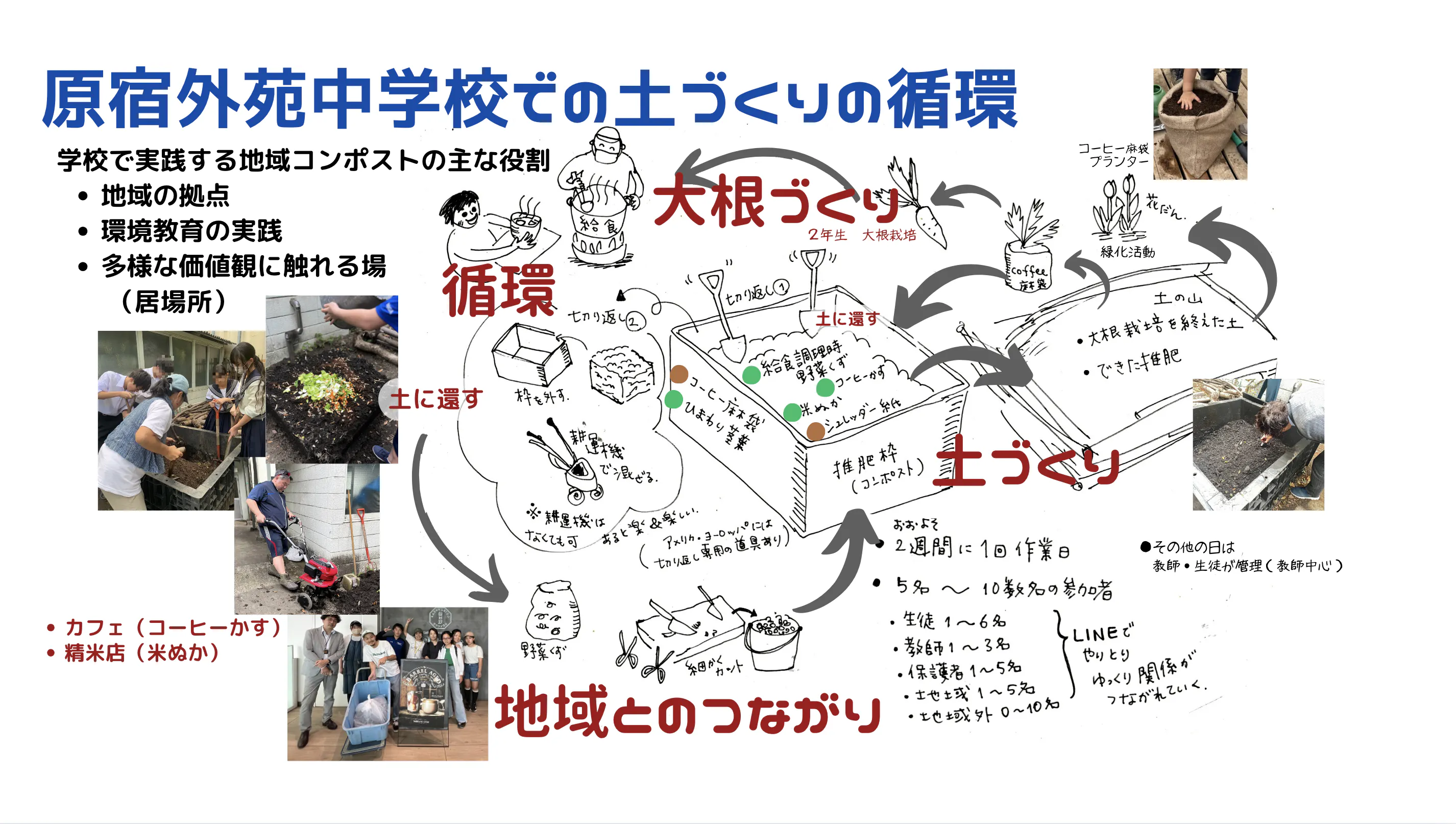 上記は、既に取り組んでいる原宿外苑中学校でのコンポスト活動ですが、これをどこの地域でもできるようにしていきたいです。