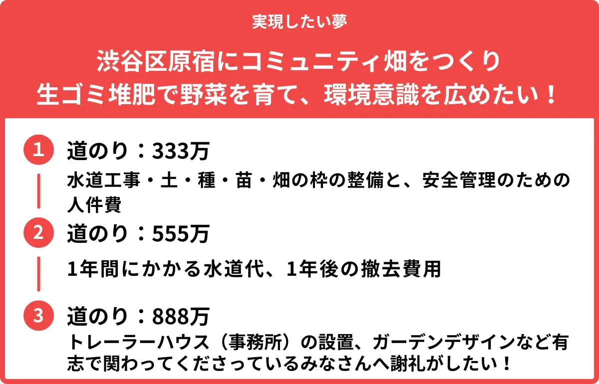 わたし達は、今回のチャレンジで以下の実現を目指します!