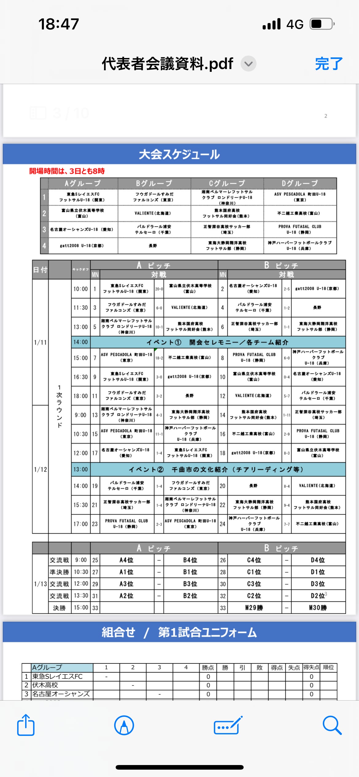 添付しています大会スケジュール、配信案内で、全試合の映像をLIVE配信されます。