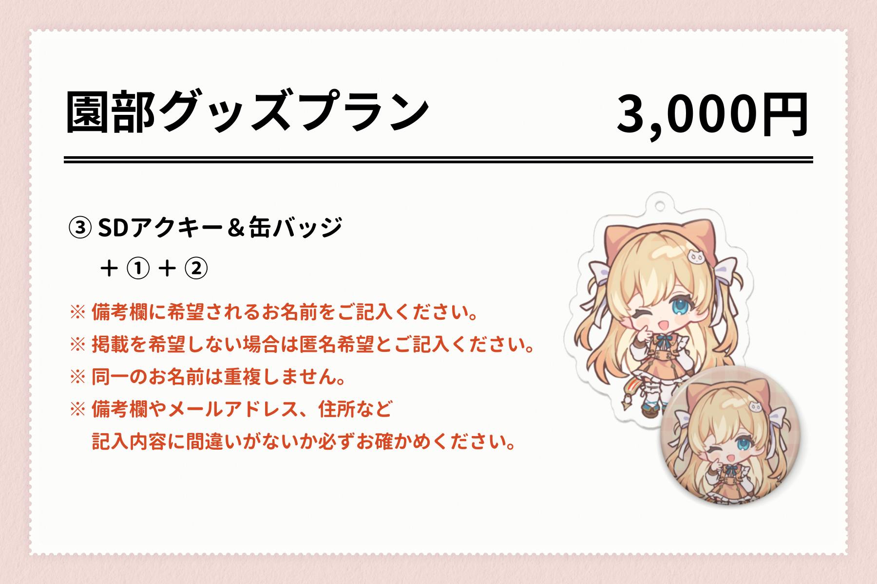 ¥3,000【追加プラン③園部グッズプラン】