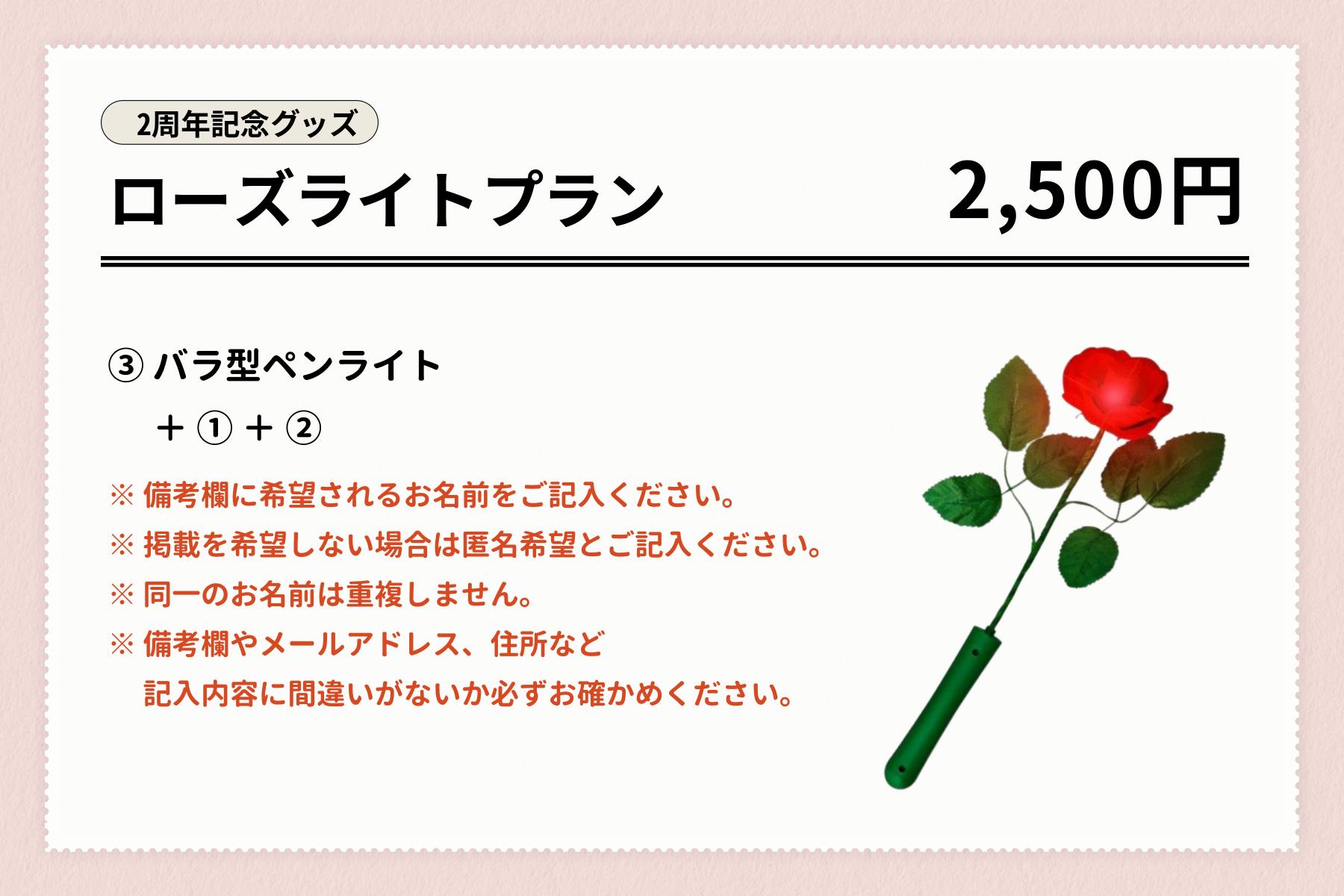 ステージ衣装をイメージしたバラ型のペンライトを振って