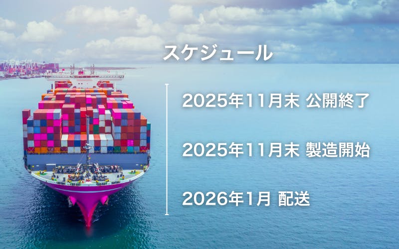 2026/02/06 10:00支援者の皆様いつも温かいご支援をいただき、誠にありがとうございます。日本到着後の通関手続きにつきまして、春節の影響により混み合っており、想定以上に時間を要しておりましたが、本日目処が立ちました。現在は通関および国内での引き取りは完了しており、来週頭より順次発送を開始する予定です。進捗があり次第、引き続き活動レポートにてご報告いたします。お待たせしてしまい誠に申し訳ございませんが、最後まで責任をもって対応いたしますので、何卒ご理解賜りますようお願い申し上げます。 もっと見る【日本到着のご報告と発送時期についてのお知らせ】