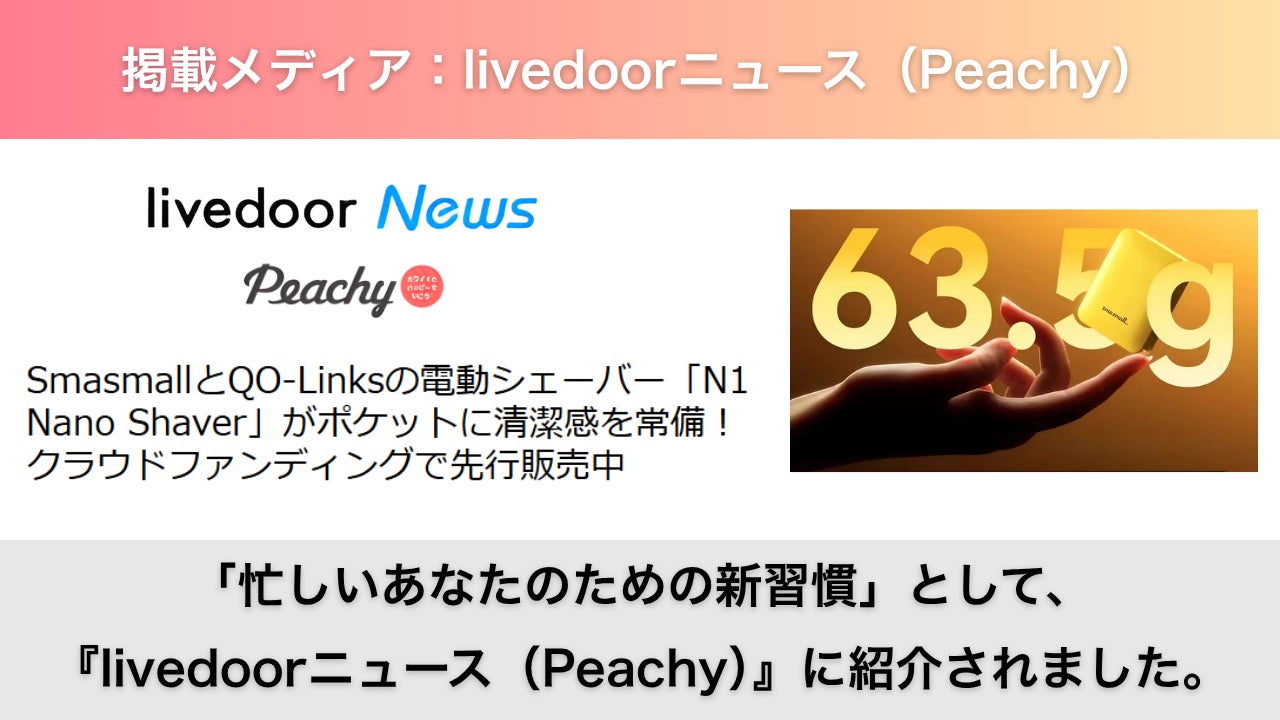 株式会社QO-Linksの広永です。いつも温かい応援、本当にありがとうございます。本日は、ライフスタイル系の人気Webメディア 『ROOMIE』 にてN1 Nano Shaver が紹介されましたのでご報告いたします。▼記事はこちらhttps://www.roomie.jp/2025/11/1639296/記事では、「夕方のヒゲが気になる“あの瞬間”、ポケットから1分で整えられる」という、生活者のリアルなシーンに寄り添った切り口で取り上げていただきました。■特にROOMIEの読者は、 ・外出先の“ちょっとした不便”を解決できる道具が好き ・ミニマルで軽いアイテムに価値を感じる ・身だしなみも“無理なく続けられる習慣性”を重視 といった傾向があり、記事でも 「わずか63g」「手のひらサイズ」「どこでも1分ケア」 が暮らし目線で詳しく紹介されていました。■ ROOMIEが高く評価したポイント ・63gの軽さで“持ち歩き前提”の使いやすさがある ・昼〜夕方に気になるヒゲのケアが外出先で完結する ・USB-Cで気軽に充電でき、常備しやすい ・見た目が可愛く、ポーチに入れても負担にならない 特に「夕方のヒゲ」というテーマは、これまでたくさんの支援者さまから寄せられたお悩みと重なっており、とても嬉しく感じました。■ “新しい1分習慣” の道具として広がっていますN1 Nano Shaverは、ただ髭を剃るためだけの道具ではなく、「外出先で気持ちを整え直せる小さなスイッチ」として多くの方に選ばれ始めています。今回のROOMIE掲載が、このプロジェクトの価値をより多くの方に届けるきっかけになれば幸いです。今後も皆さまに誇っていただけるプロジェクトに育てていきますので、引き続き応援いただければ嬉しいです。